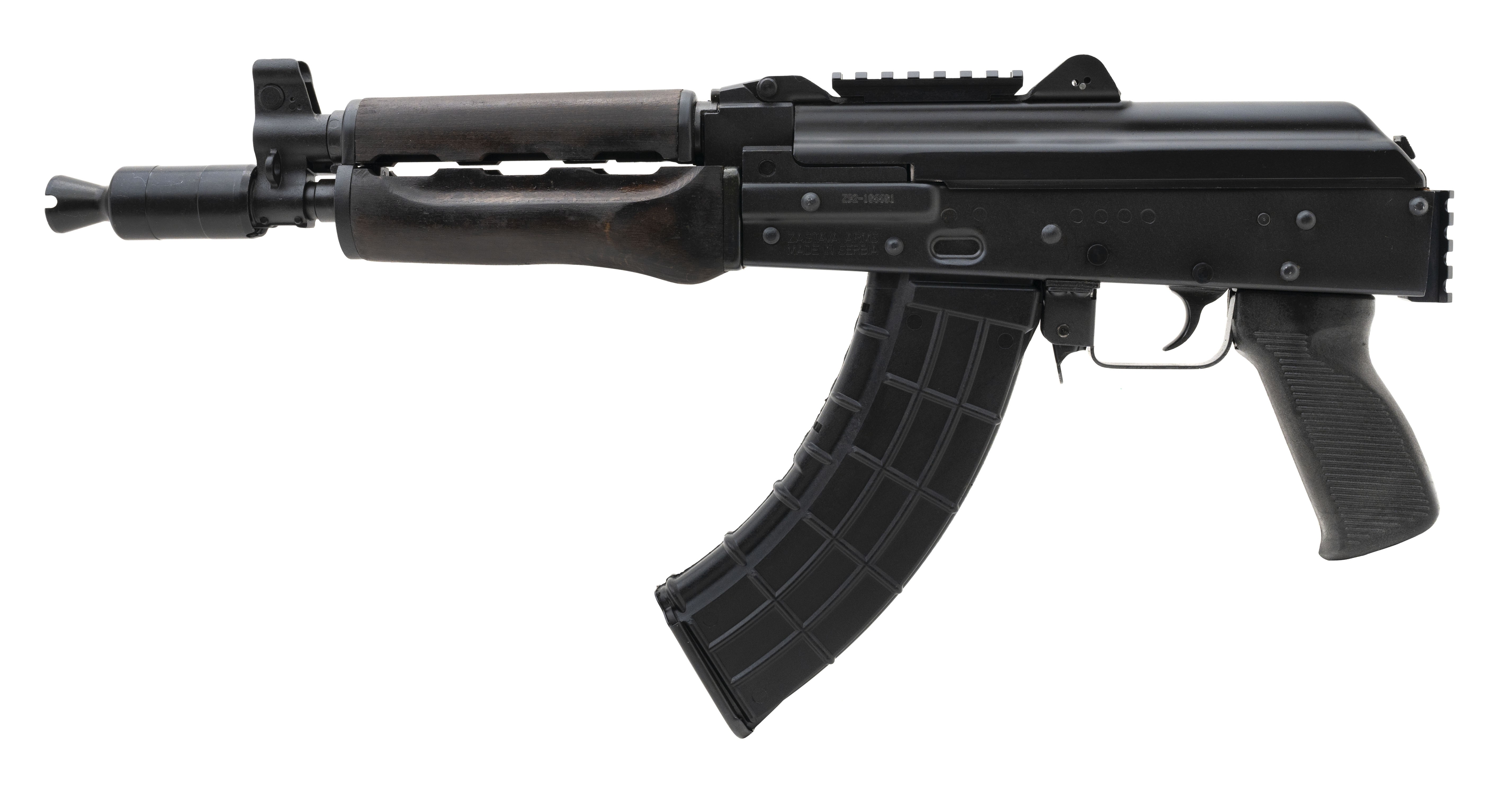 10" chrome lined blued AK pistol with a booster muzzle device, hinged top cover, picatinny optics rail, bolt hold open and a 1.5mm receiver. NEW. UPC:685757098199.
