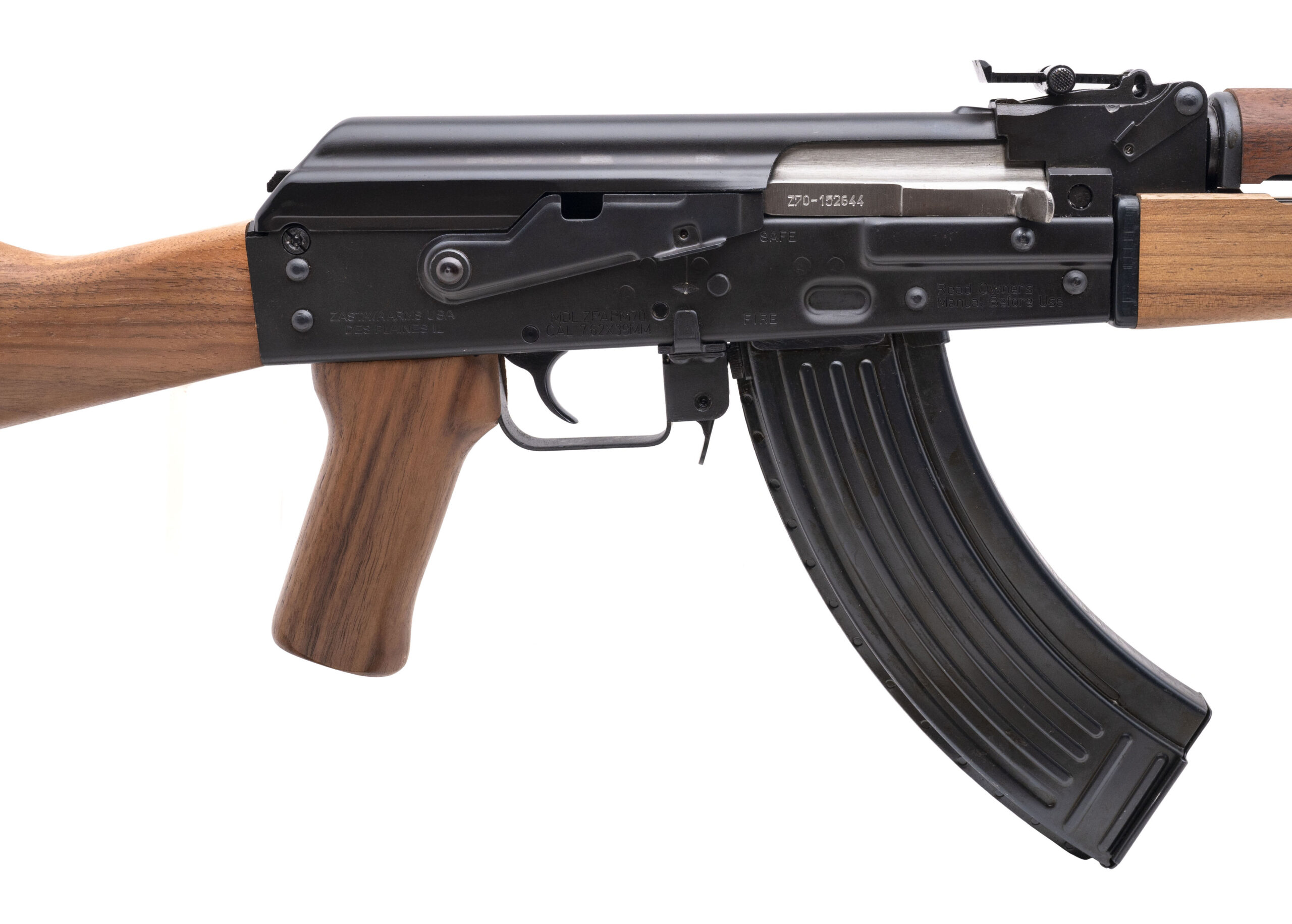 SN: Z70-152644. Modern production 7.62x39 with an 16.3" chrome lined barrel. Bore is bright with excellent rifling. Semi-Auto Rifle. Finish is in excellent condition. Walnut Furniture is in excellent condition. Overall condition is excellent, Comes with sling.