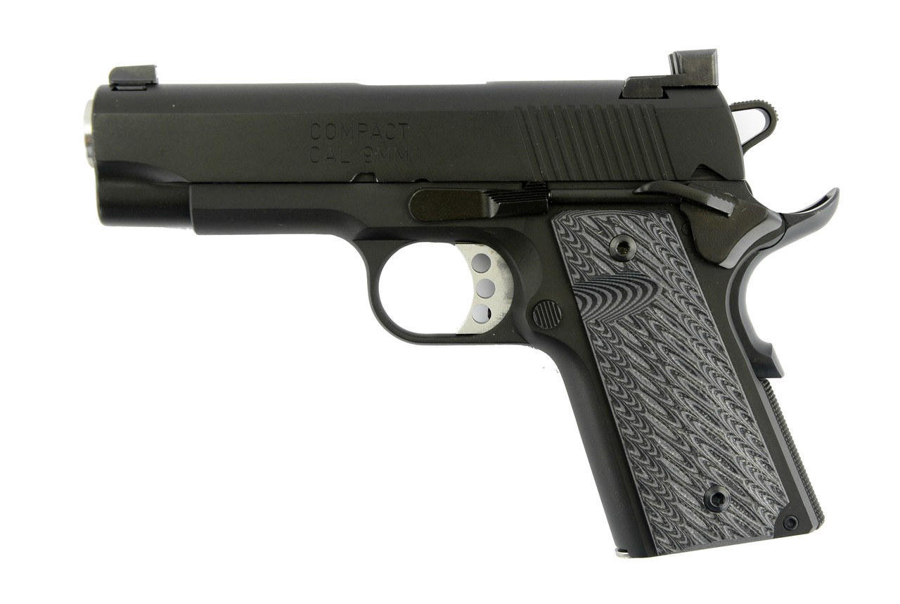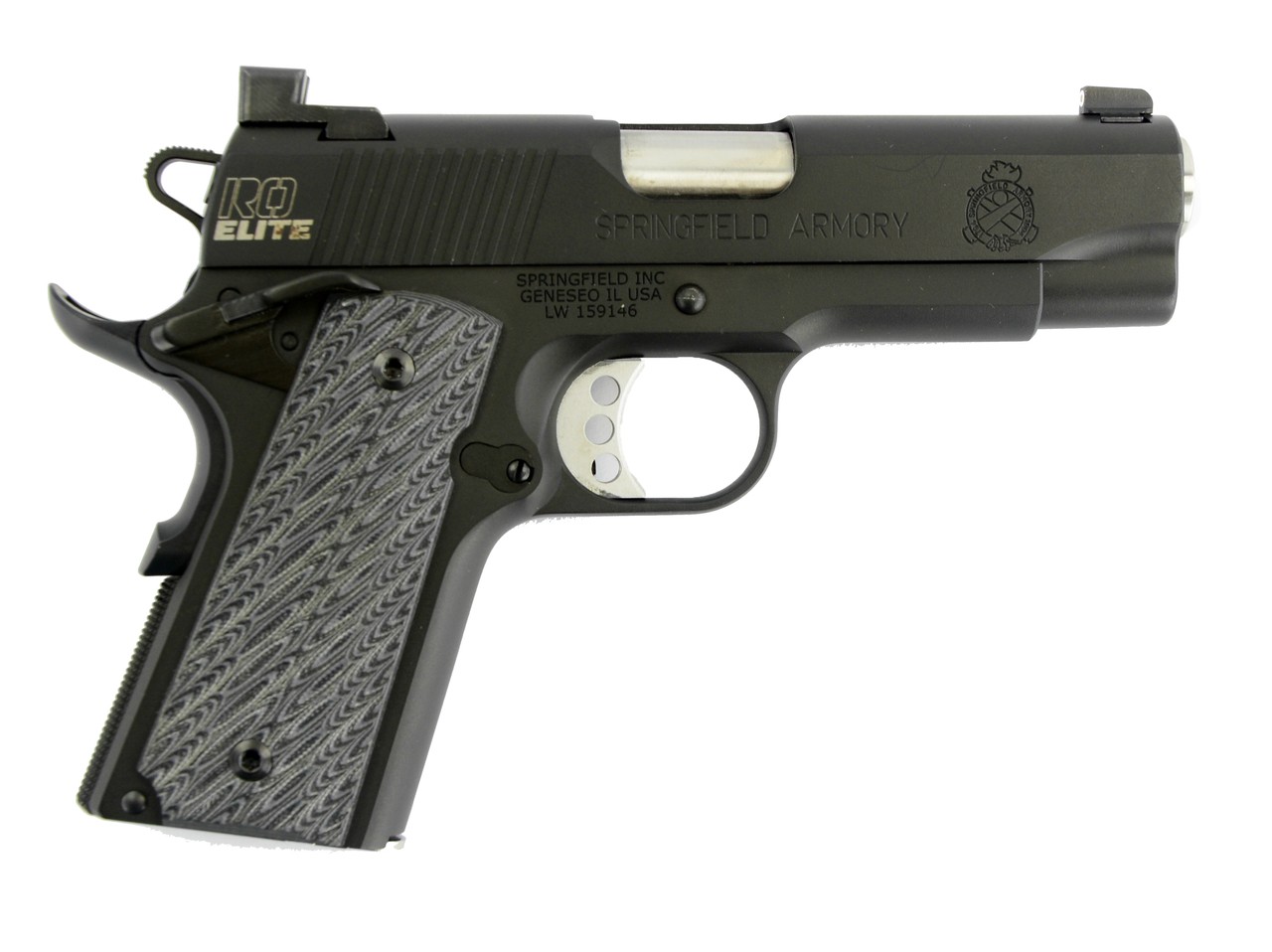 Springfield Compact 9mm caliber pistol. R.O Elite 4” compact carry gun. Has alloy frame, G-10 grips and night sights. Excellent condition with bag and extra magazine.