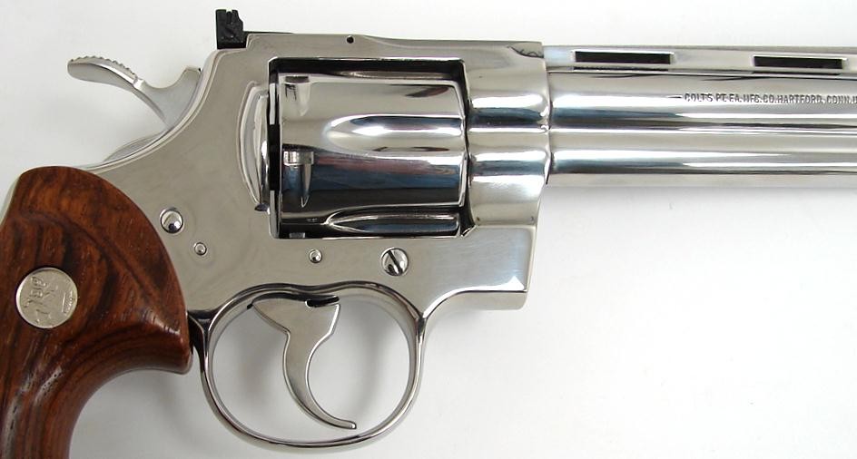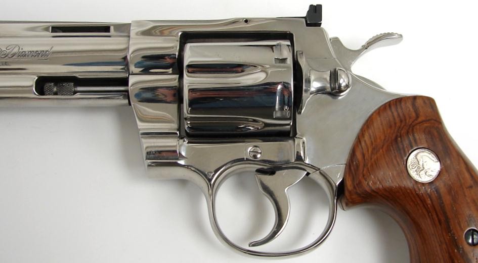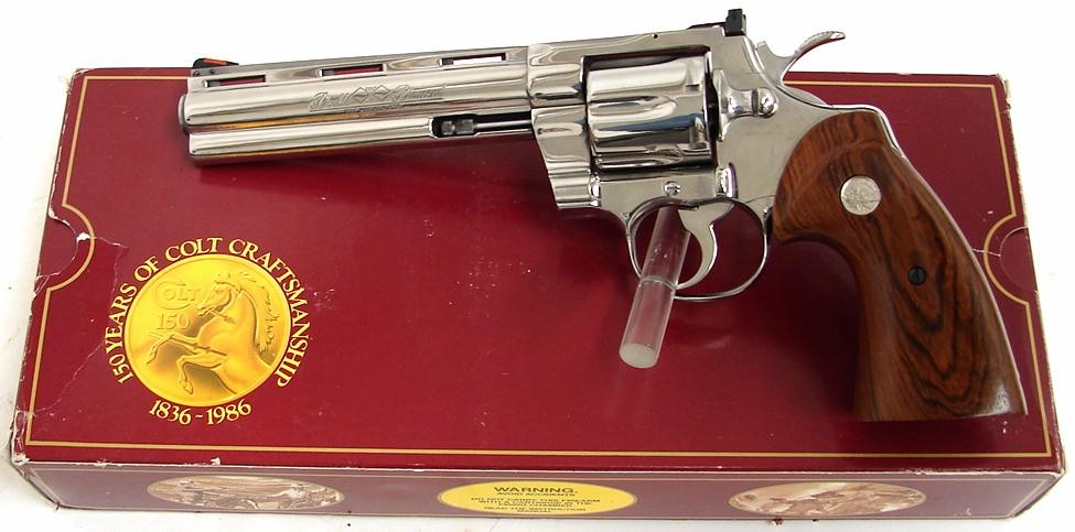 Colt Double Diamond .357 Magnum caliber revolver. Rare Double Diamond Python commemorative, only 1000 made in 1986. Bright stain (c4268)