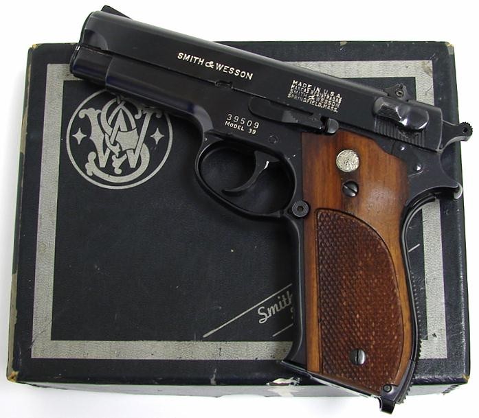 Smith & Wesson 39 9mm Para caliber pistol. Rare all steel early model. Excellent condition with box. Only 927 made in all steel.