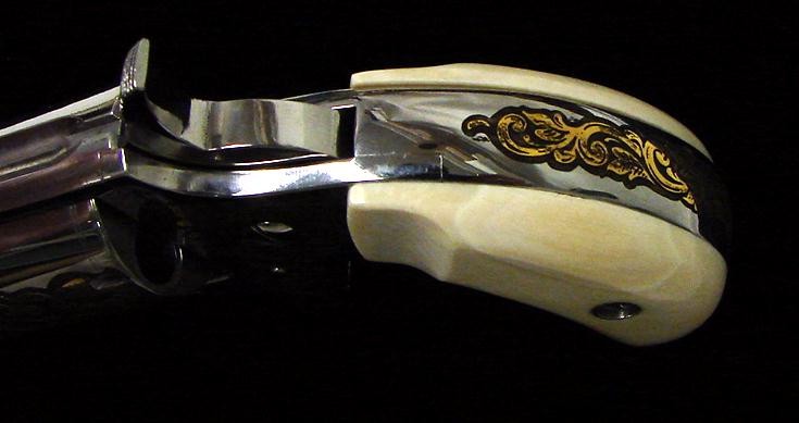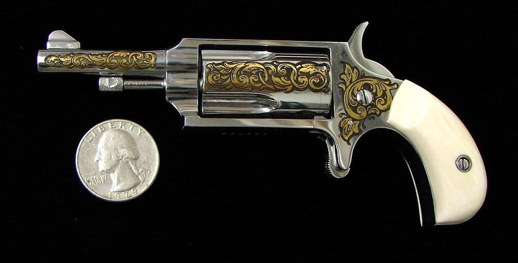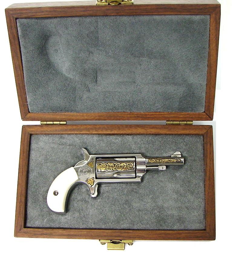 Freedom Arms Mini Revolver .22 Mag caliber revolver. Rare special edition with bright polished stainless, Gold etching and genuine Ivory grips. Comes with wooden case. Excellent condition.