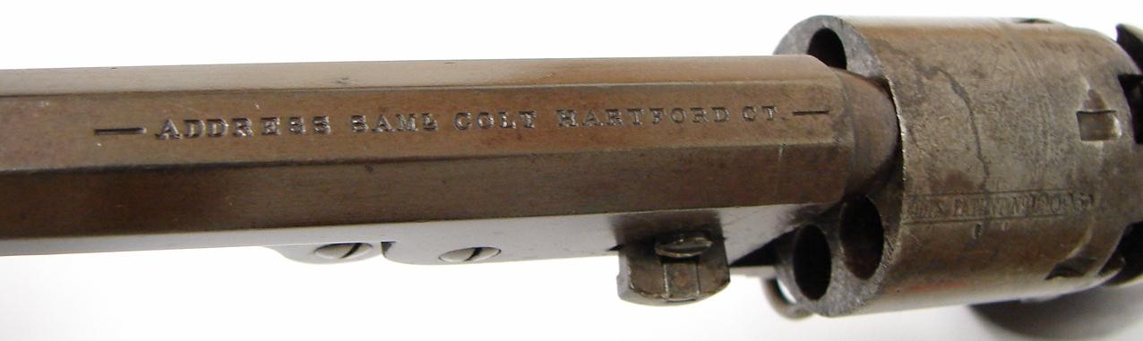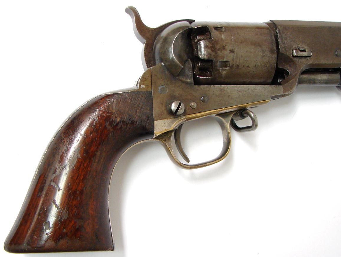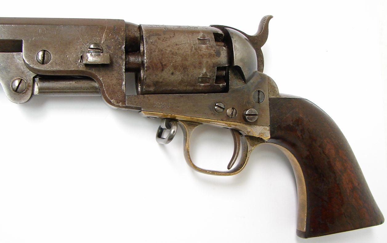 Colt 1851 Navy revolver cut for shoulder stock. Made in 1861. Rare model. Gun is all matching and is actually a nice sharp gun. Cylinder scene remains on the cylinder. Action is tight and works perfectly.