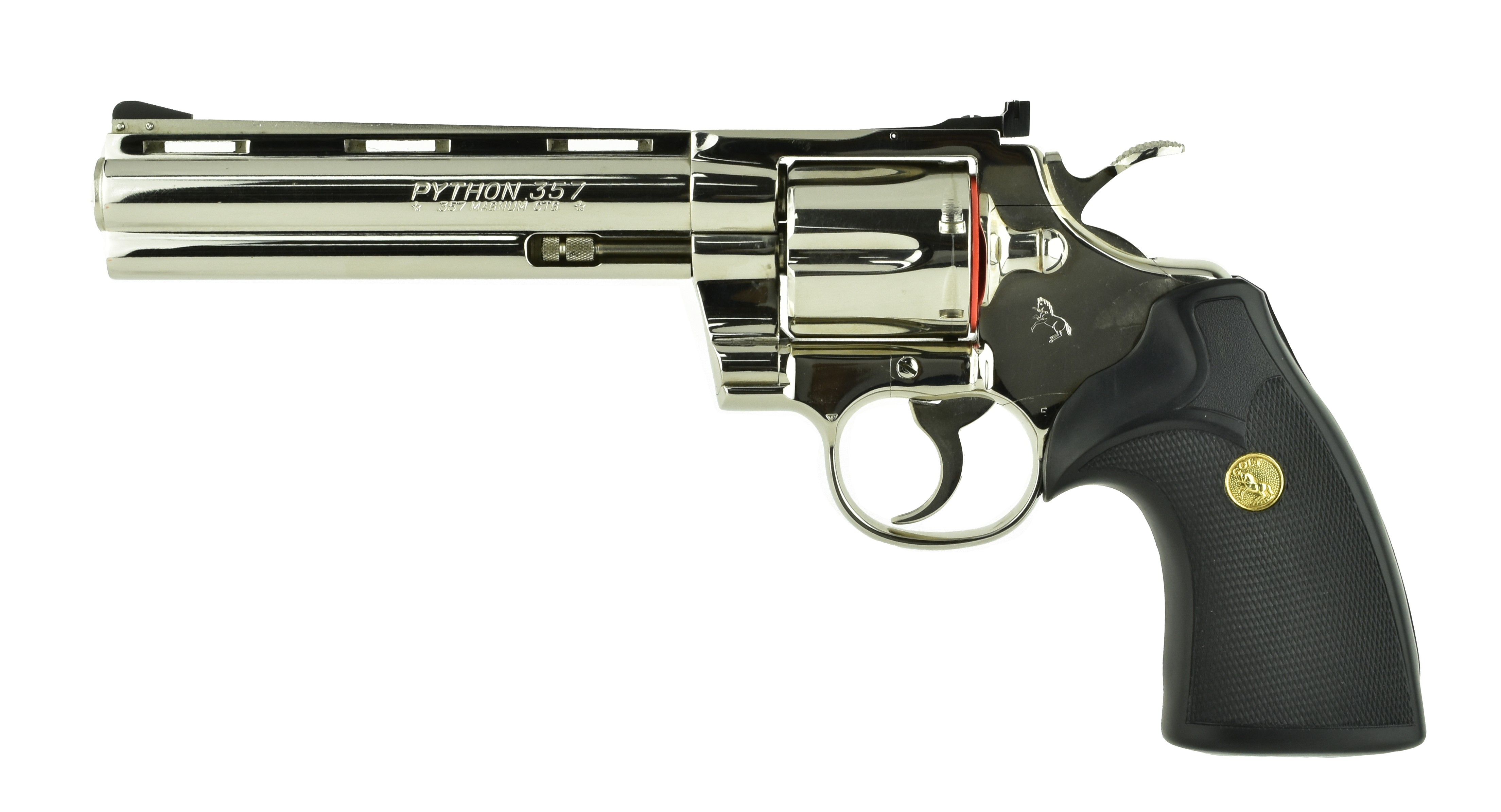 Colt Python .357 Magnum Caliber Revolver. 6” Model with custom bright stainless finish in excellent condition.