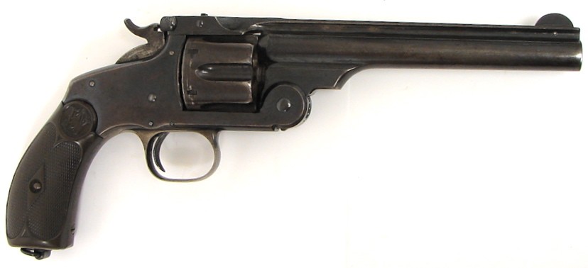 Smith & Wesson New Model #3 .44 Russian caliber revolver. Has an excellent bore and excellent mechanics. Chamber is originally .44 Russian and has been opened to a longer .44CTG. Will shoot .44 Russian just fine. Overall in very good condition.