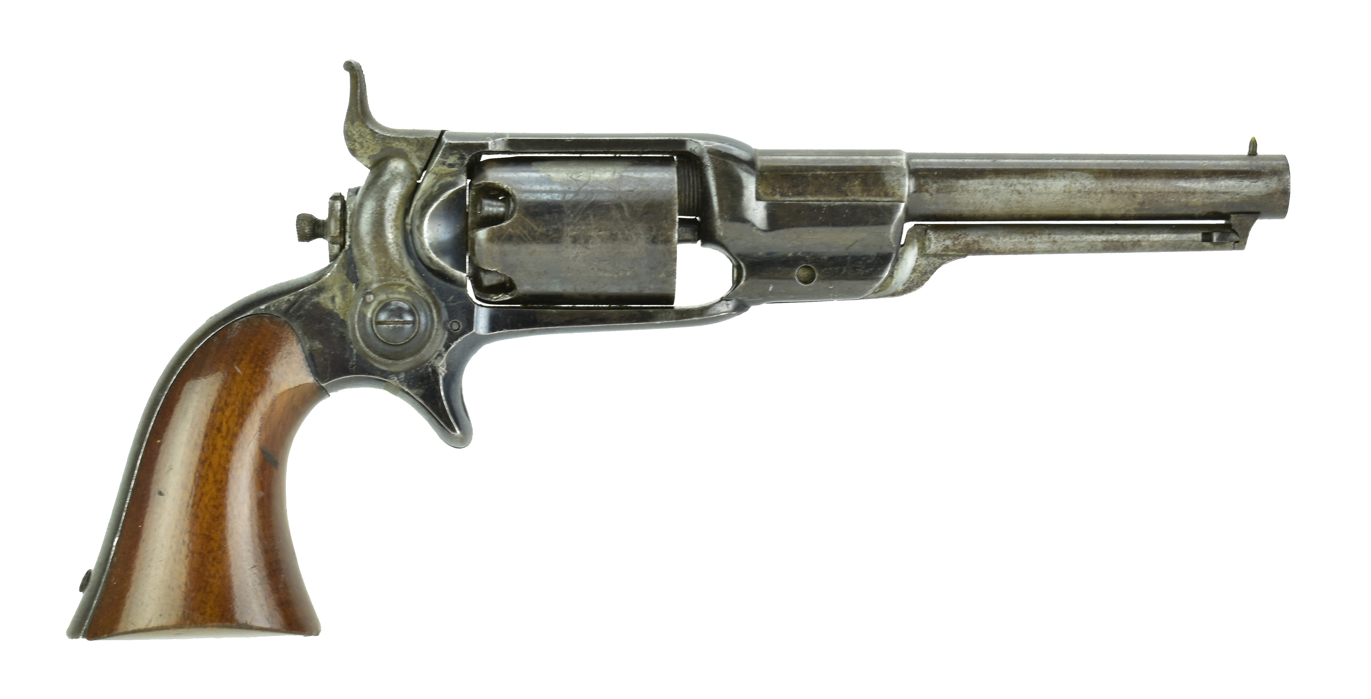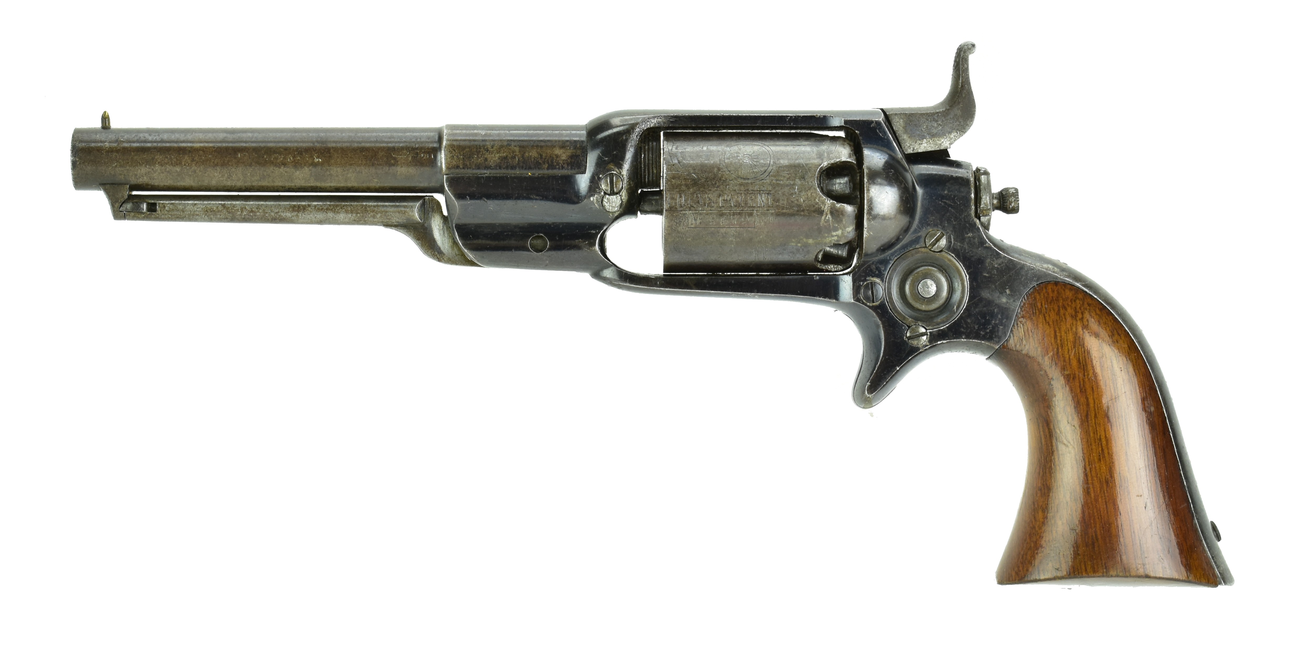 Colt 1855 Model 6A Root Revolver. Made in 1856. .31 Caliber with a 4 ½” barrel. 65% of the original blue finish. Grips are excellent. All markings are clear. Very fine all original gun!