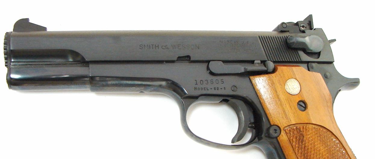 Smith & Wesson 52-1 .38 Special MR caliber pistol. .38 Wadcutter Target model in about mint condition. With box, magazine and tools. A nice set.
