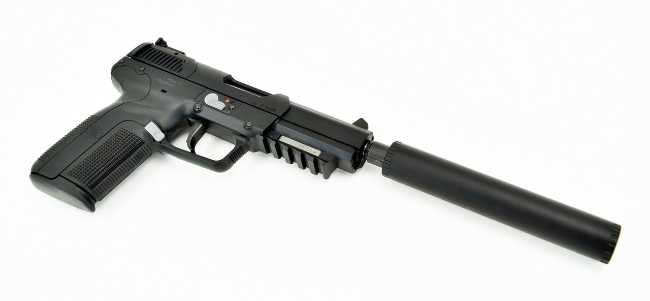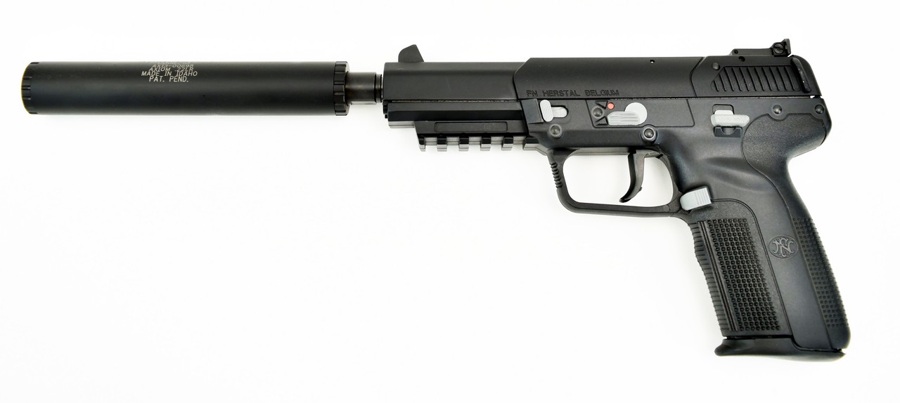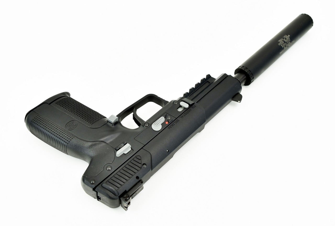 Fn Fabrique National Five-Seven 5.7X28mm caliber pistol with Tactical Solutions Axiom .22 LR FN 5.7mm pistol with tactical solutions Axiom suppressor. Comes with one magazine. New. All NFA Rules Apply.