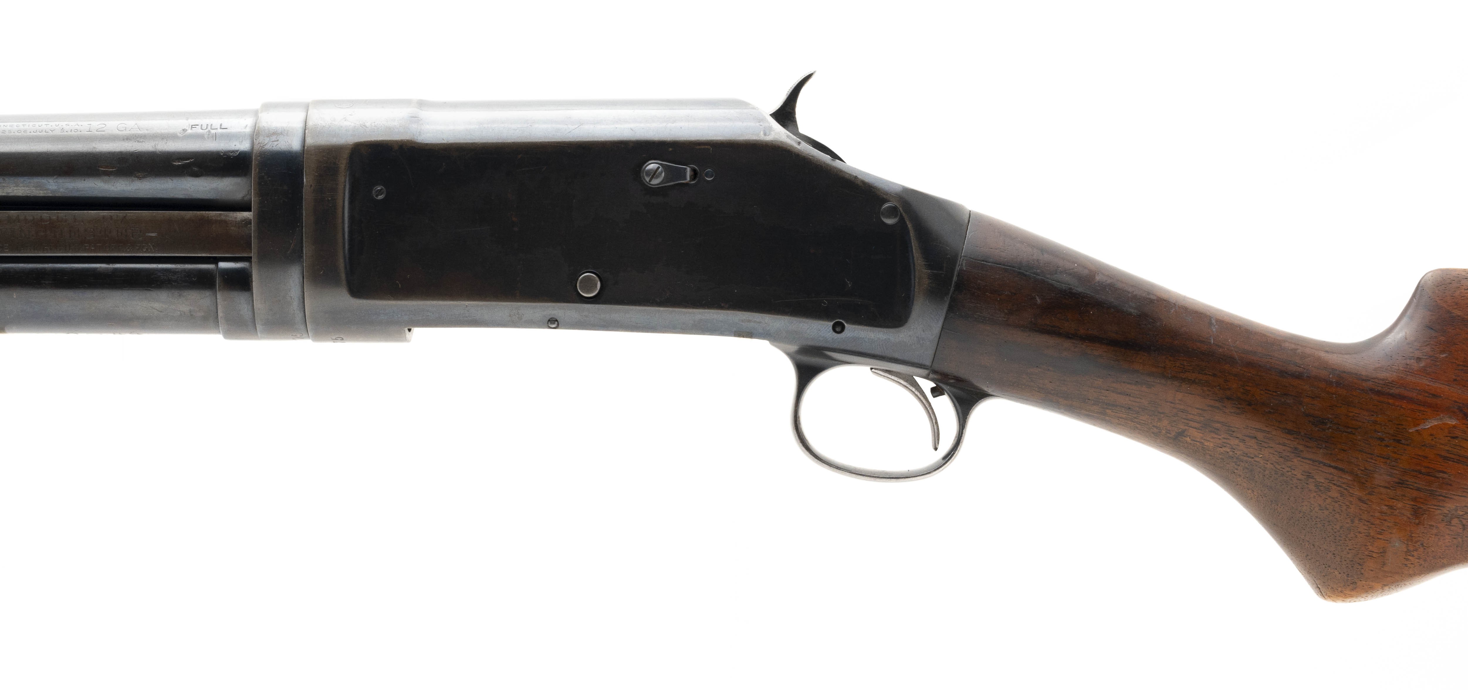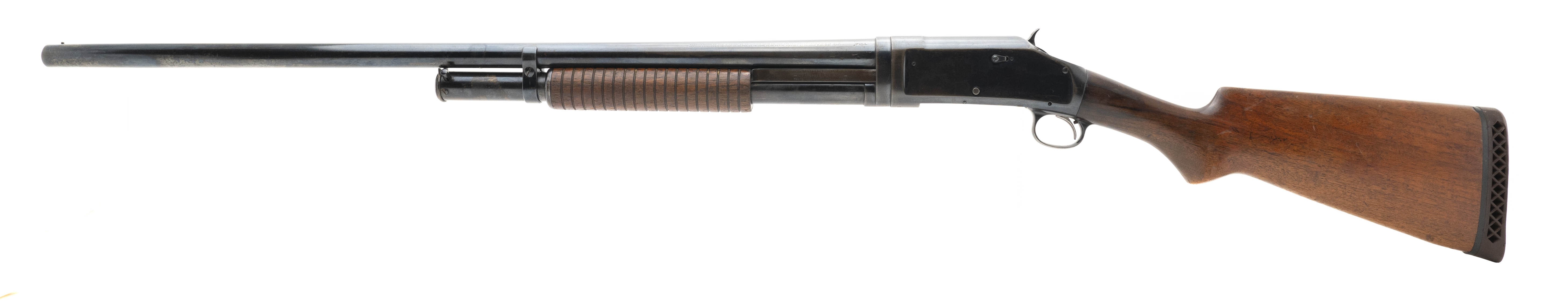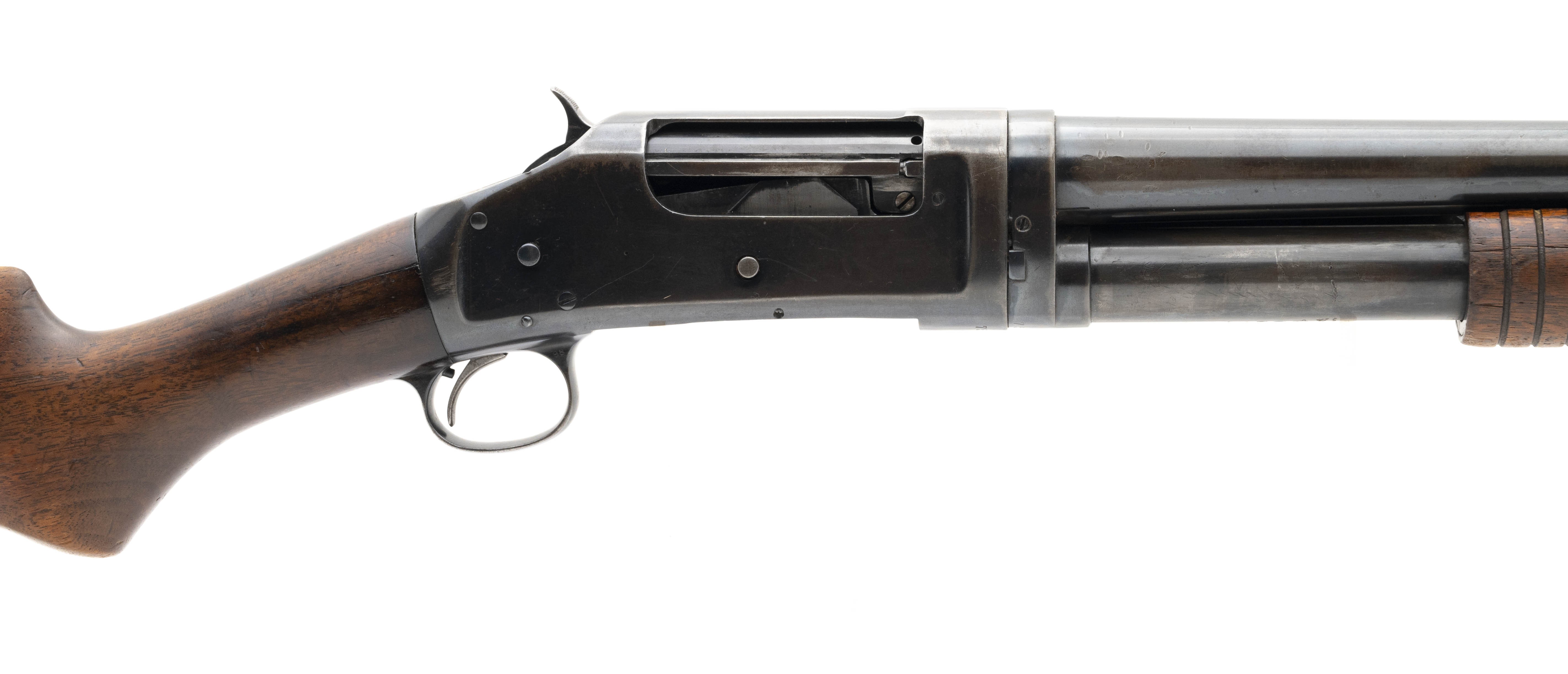 Popular Pump-action, hammer-fired shotgun with a 30" barrel. Made in 1922. The bore is excellent. The shotguns has 90% of its blue with some "hunting" wear. The stock and forend are in good to very good condition with some handling wear. Has a replacement recoil pad. Overall good to very good condition.