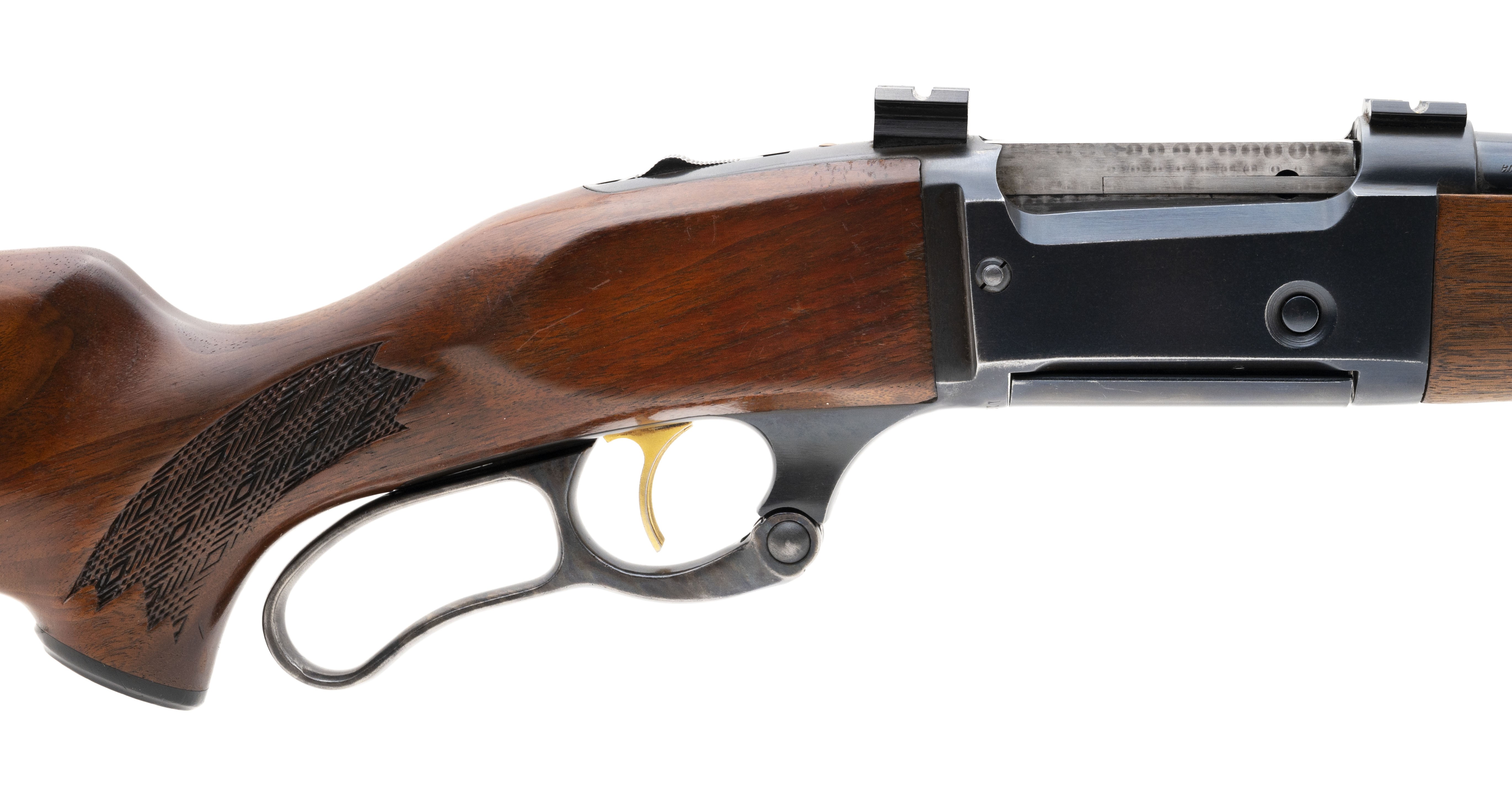 Rare late series deluxe model with detachable magazine. The stock is in very good condition with some light handling wear. The metal has some light usage wear with approximately 90% of its original finish. Has vivid case colors on the lever and jeweled bolt, with scope mounts added. The stock has been shortened, LOP is 12.5". Overall very good condition.