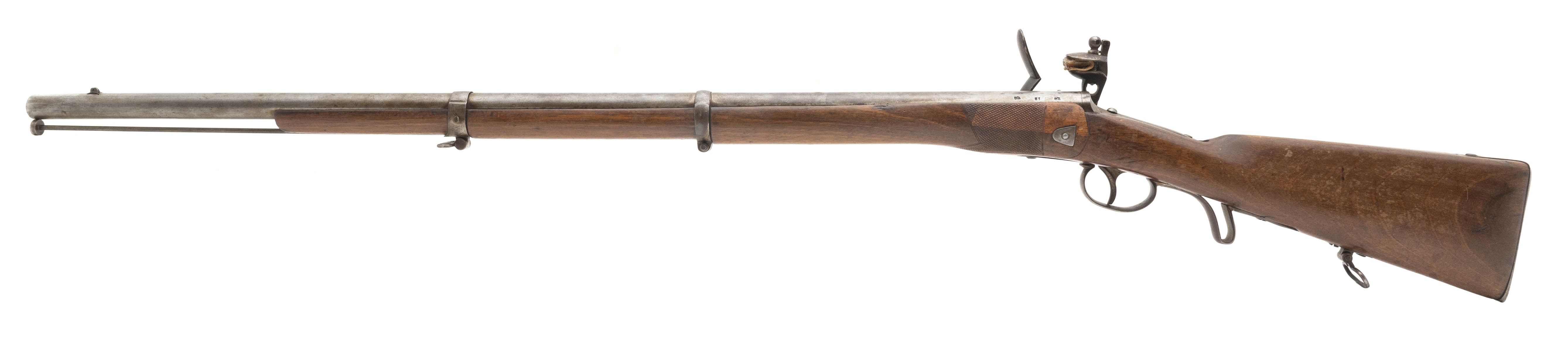 Austrian Werndl rifle convtered in England to a flintlock musket in the early 20th century. Butt plate has original Austrian unit markings on tang. Barrel is 36" and has English black powder proofs. A very interesting flintlock!