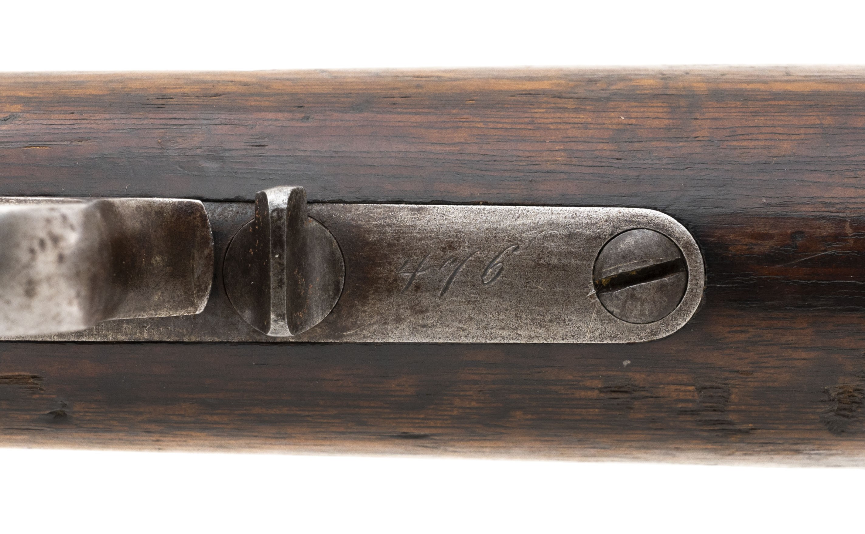 Serial number 476. Made in 1876. 45-75 caliber with a 28” barrel. Nice sharp gun with blue in protected areas. Early gun with the open top frame. Wood is very good. Nice example of an early gun!