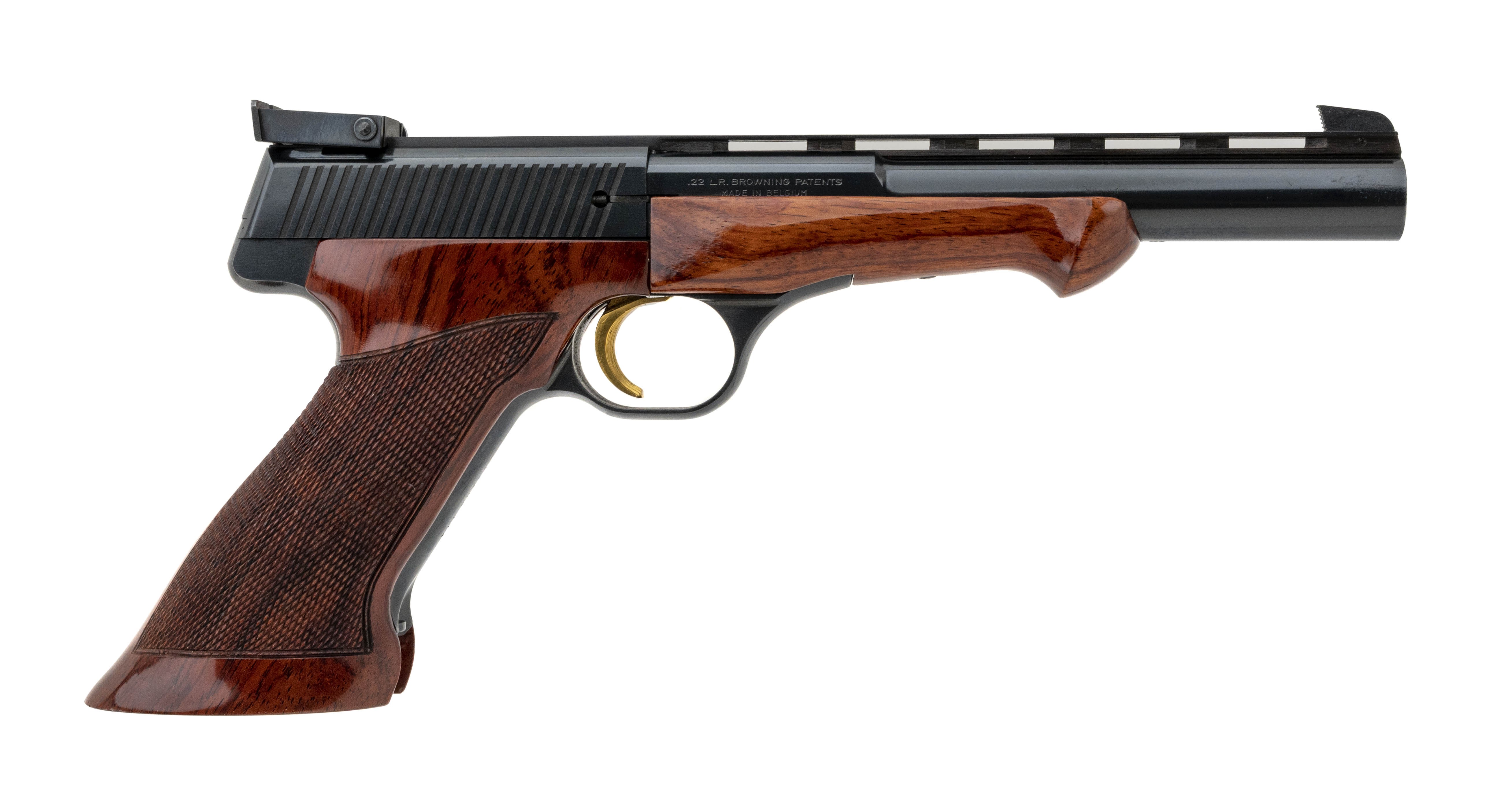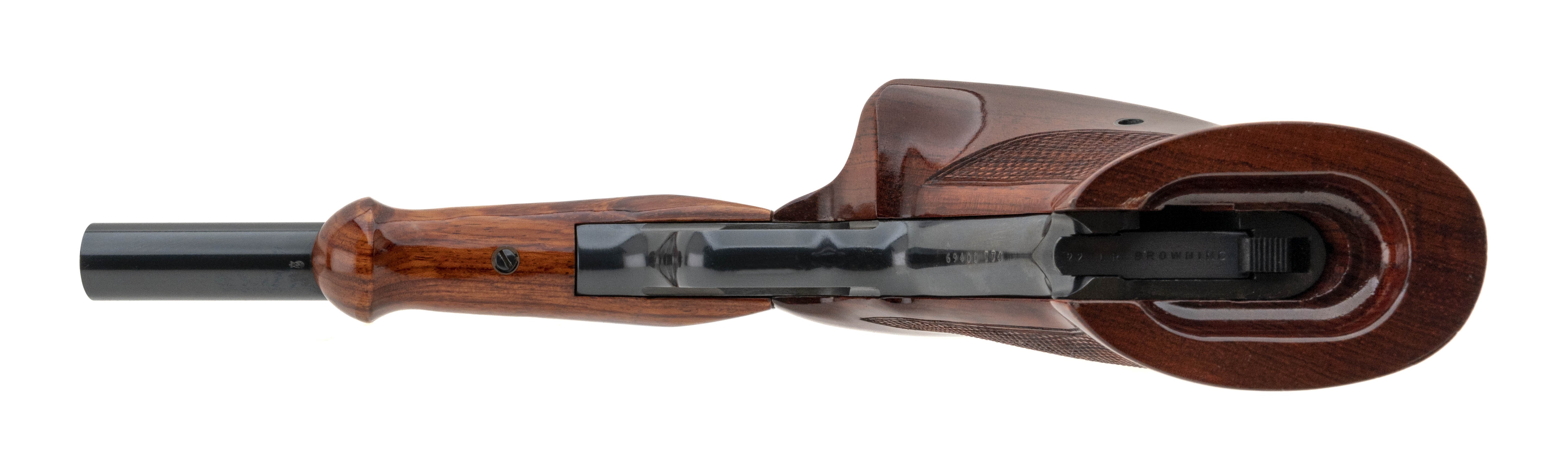 SN: 69400T74. Original Belgian made target pistol, made in 1974. Comes with case and accessories. Has a bit of wear on the grip frame, otherwise excellent condition.