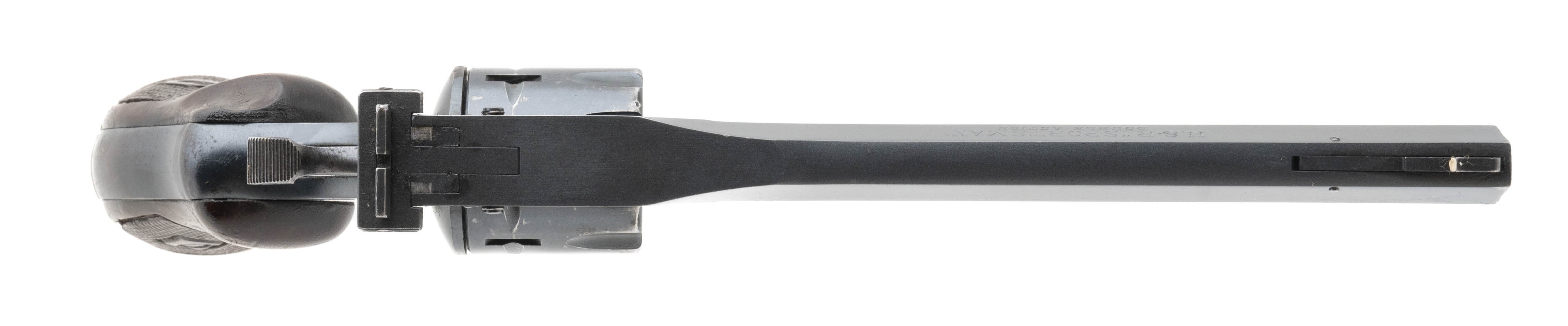 SN: U345. 1950's production, .22LR with a 6" barrel. 9-shot break top revolver with wood grips. Very good condition.