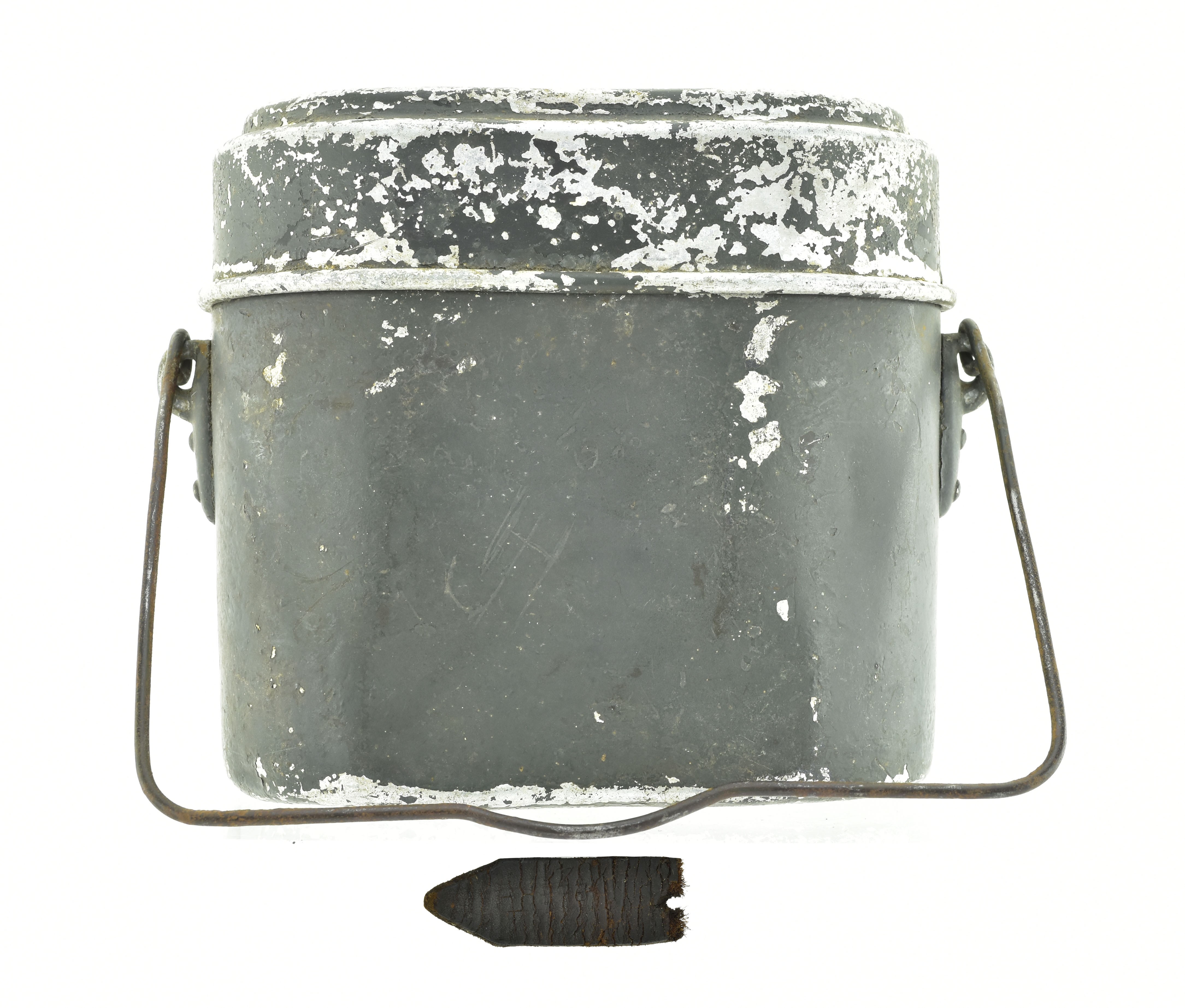 German WWII Mess Kit Dated 1941. Kit is all original including RostFrei (Stainless) utensils, but, missing its' leather strap. Utensils are in very good condition W|all of the factory polish. Great Setup!