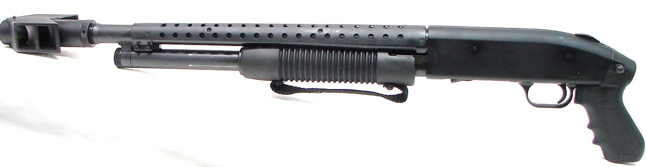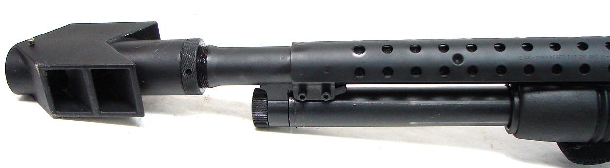 Mossberg 500 12 gauge shotgun. Pistol Grip Riot gun with muzzle brake that looks suitable for a tank. Neat! (S4848)