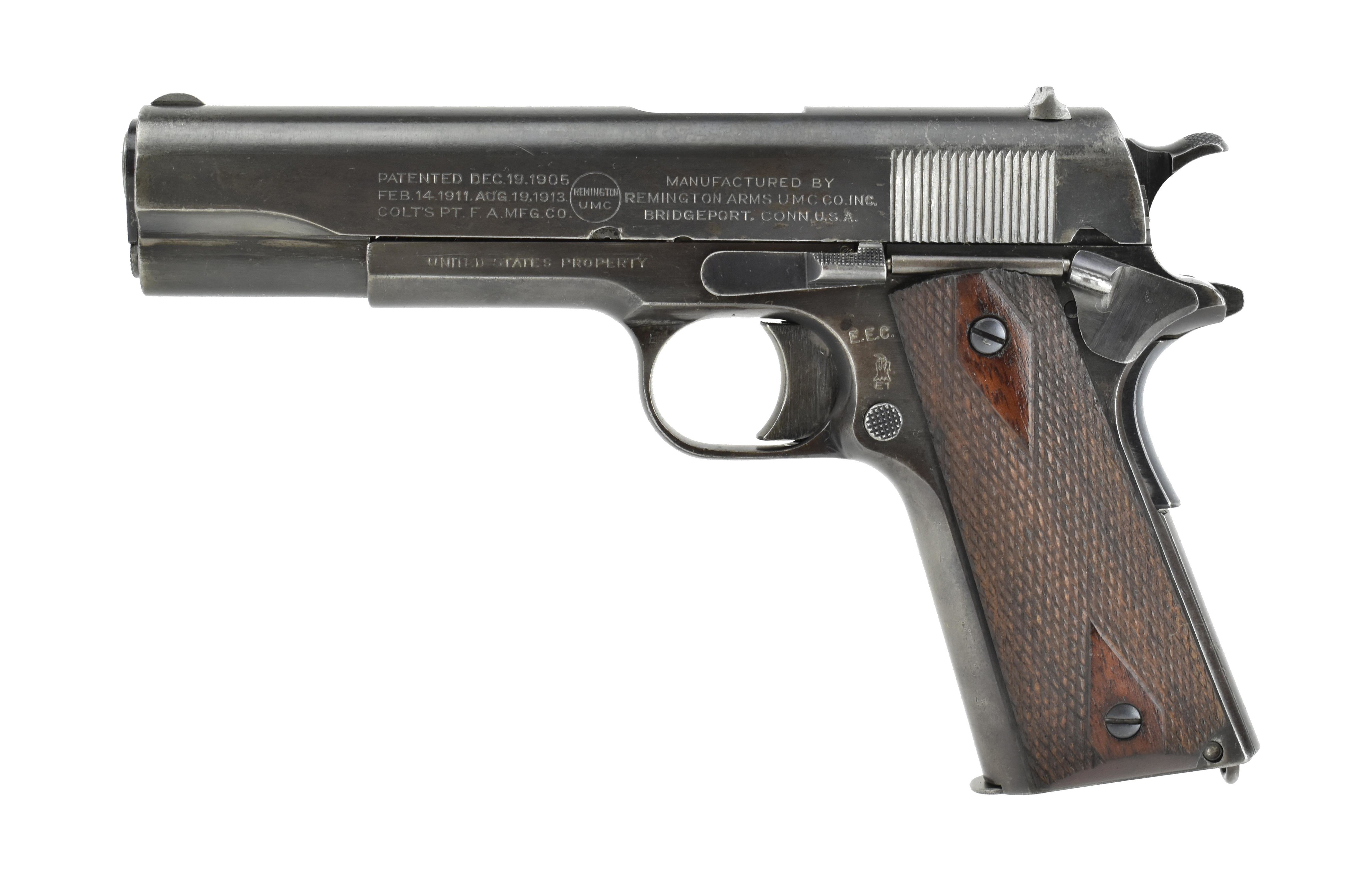Remington UMC 1911 .45 ACP caliber pistol. Desirable WWI U.S. issue pistol made by Remington UMC. Slide has approximately 90% original finish with minor flaking. Bore is very good with strong rifling. Very good overall condition. A scare Remington UMC 1911.